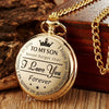 Erinnern Sie Ihren Sohn mit dieser schönen Taschenuhr mit Lasergravur daran, wie sehr Sie ihn lieben. Diese Taschenuhr ist das perfekte Geschenk, das er wirklich zu schätzen wissen wird und das er zu schätzen weiß. Mit dieser gravierten Erinnerung wird er deine Liebe für immer bei sich tragen...