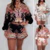 🌷Sommer-Schnäppchen – 49 % Rabatt🩵Zweiteiliges Set aus Hemdbluse mit modischen Prints und Shorts mit Gürtel